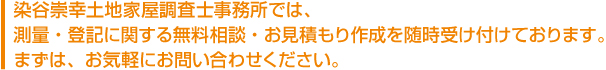 測量に関する事なら、ぜひ染谷崇幸土地家屋調査士事務所までご相談下さい。